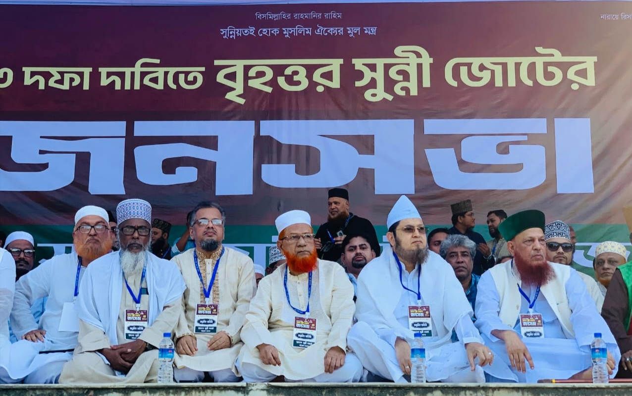 জাতীয় নির্বাচন বানচাল হলে দেশ ভয়াবহ বিপর্যয়ের মুখে পড়বে।আগামী ফেব্রুয়ারিতে ঘোষিত জাতীয় নির্বাচন নিশ্চিত করা, রাষ্ট্রীয় সংলাপে এবং জুলাই সনদে সকল নিবন্ধিত রাজনৈতিক দলকে অংশগ্রহণের সমান সুযোগ দেয়া, দুর্নীতিবাজ কালোর টাকার মালিক ও দণ্ডিতদের নির্বাচনে অযোগ্য ঘোষণা করা, মাজার মসজিদ খানকায় হামলায় জড়িতদের বিচার, জুলাই বিপ্লব ও পরবর্তী সময়ে সংঘটিত সব হত্যার বিচার করা এবং মবসন্ত্রাস থামানো সহ ১৩দফা দাবিতে ১৫ নভেম্বর শনিবার বিকালে চট্টগ্রাম লালদীঘি ময়দানে বিশাল জনসভার আয়োজন করে বৃহত্তর সুন্নীজোট চট্টগ্রাম জেলা।